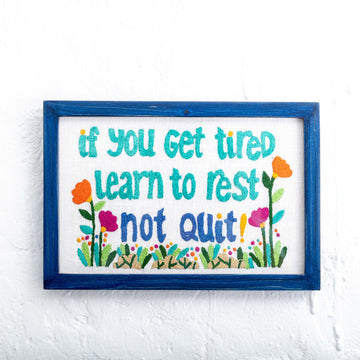 Handcrafted Embroidered Wall Frame - "If You Get Tired, Learn to Rest, Not Quit"