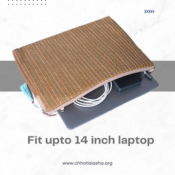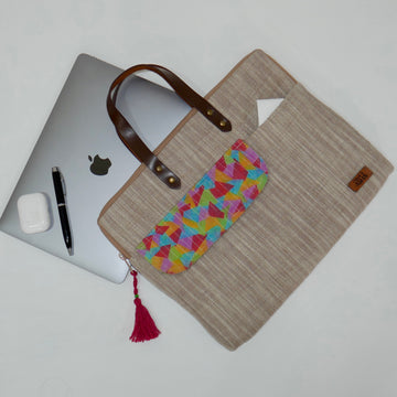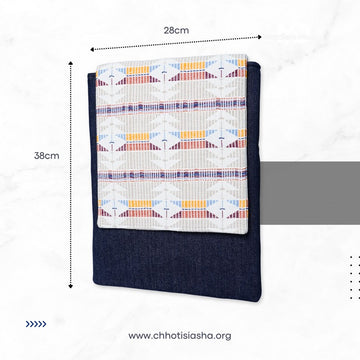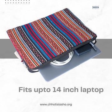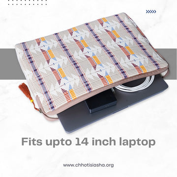 With intricate patterns and a play of colours, this horizontal laptop sleeve made in soft...