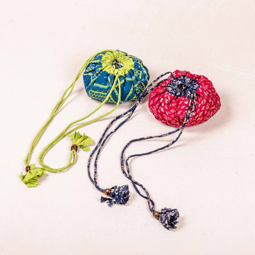 Our small but mighty Drawstring Potli Bag features a delightful combination of Blue and Green...