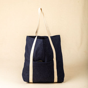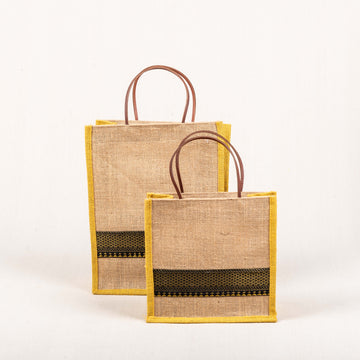 A multipurpose jute bag with vibrant strips of fabric! The handles too are made of...