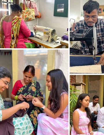 Imagine the incredible energy of a room with a bunch of desi women on their sewing machines with a witty sense of humor, humility and some brilliant craftsmanship- that's our workshop.