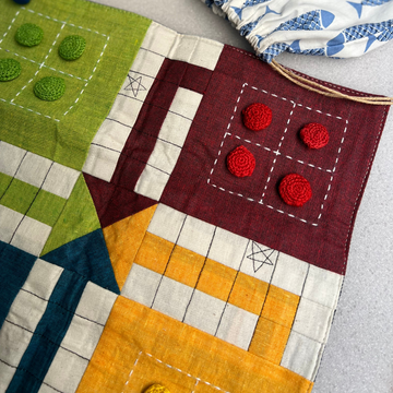 This handmade game is special to Chhoti Si Asha as it has been very thoughtfully put together by our various teams. The main board made of denim and the mark-in fabric has been put together with a lot of care by our stitching team. However, it is the meticulous hand embroidery that really makes this product most unique!
