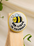 🔸 BeeLieve in Yourself – A beautifully stitched bee with an empowering message to trust your journey.