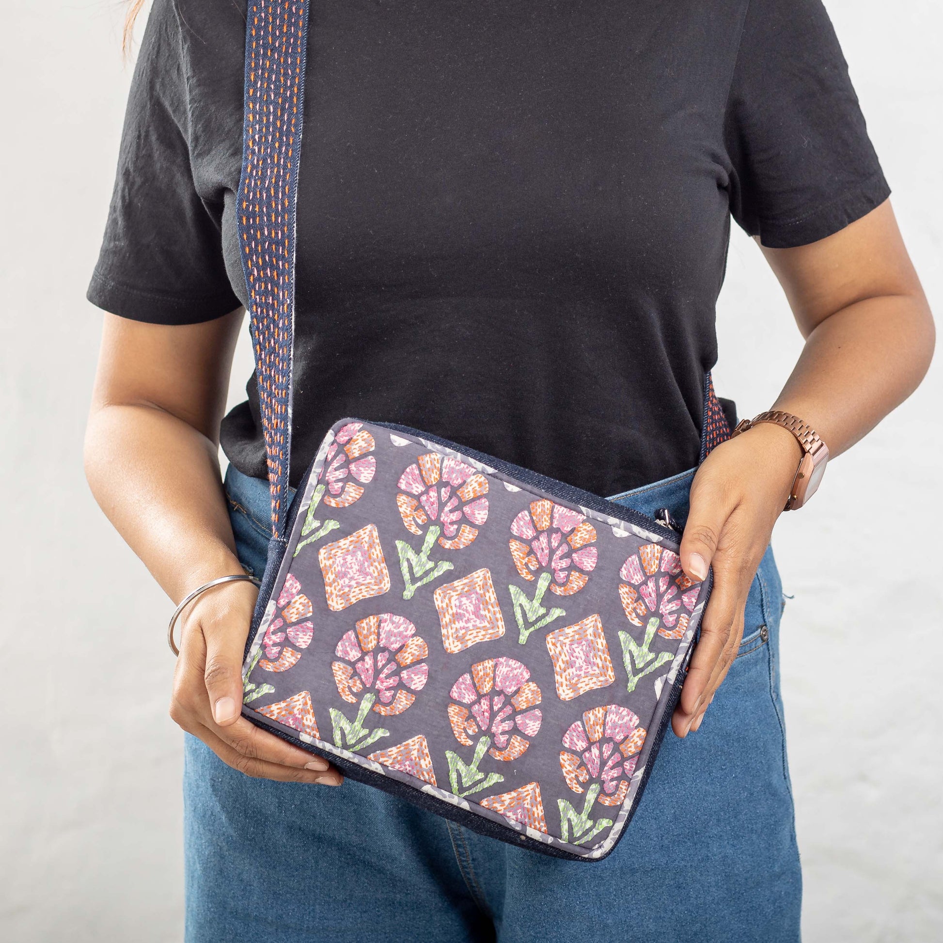 - Unique Sling Design: The sling is adorned with detailed threadwork and kantha stitching, showcasing the skill and creativity of the artisans.