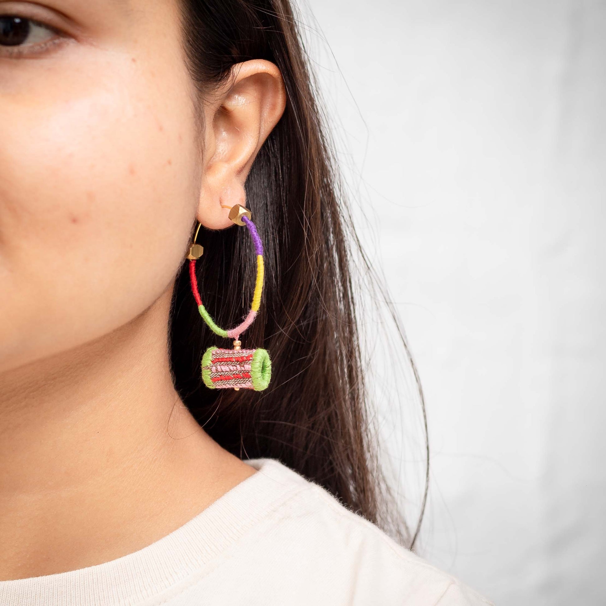 Get ready to march to the beat of your own drum with our newest sensation—Handcrafted Damru-Shaped Earrings! Crafted with love and flair by talented women artisans, these earrings aren't just accessories; they're a vibrant celebration of handmade artistry, infused with heaps of love and affection.