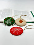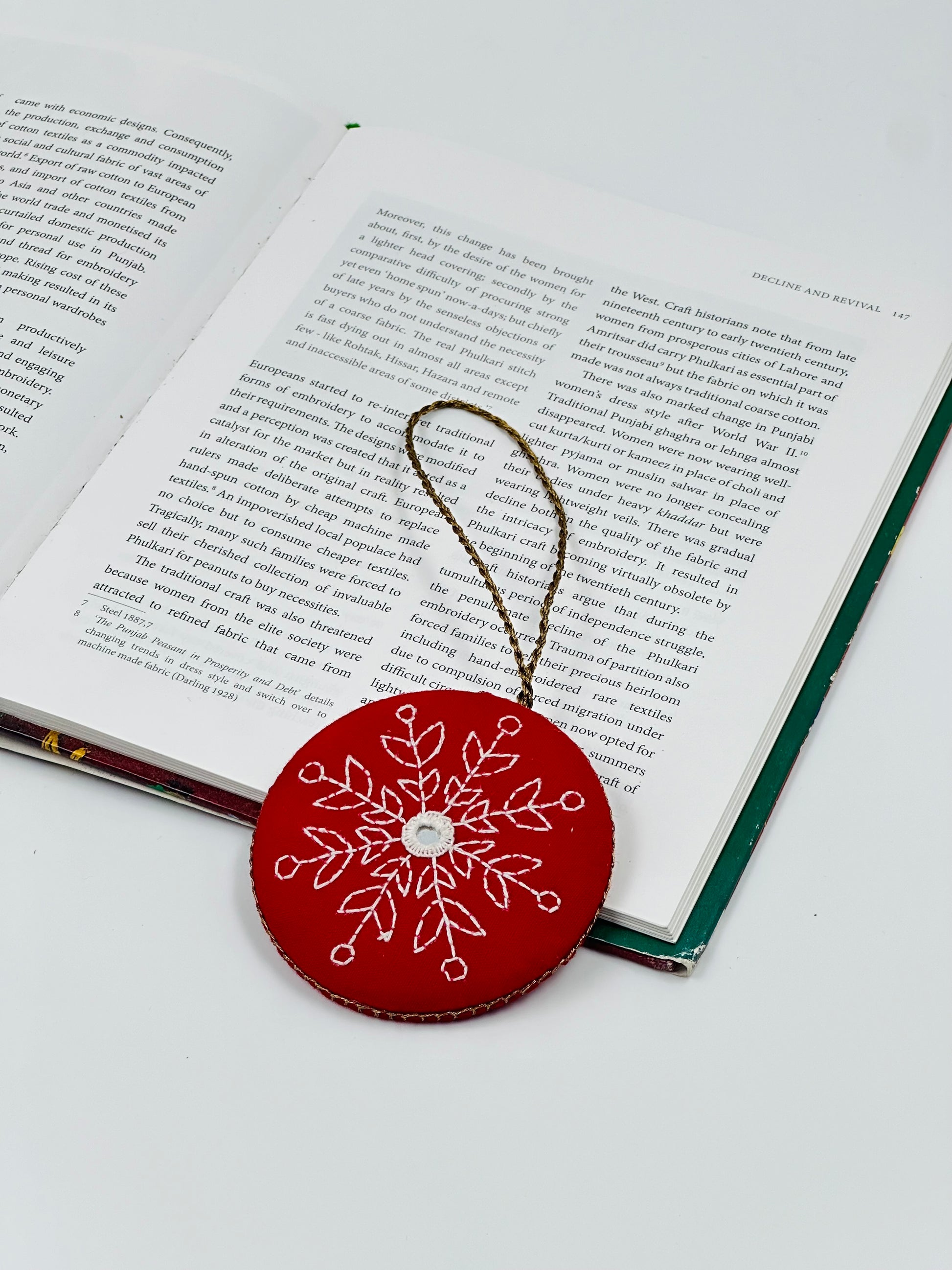 Celebrate the spirit of Christmas with Festive Classics Hand-Embroidered Ornaments—a collection of beautifully crafted 3-inch decorations. Each ornament showcases a unique and intricate motif: a reindeer, a Christmas tree, or a snowflake.