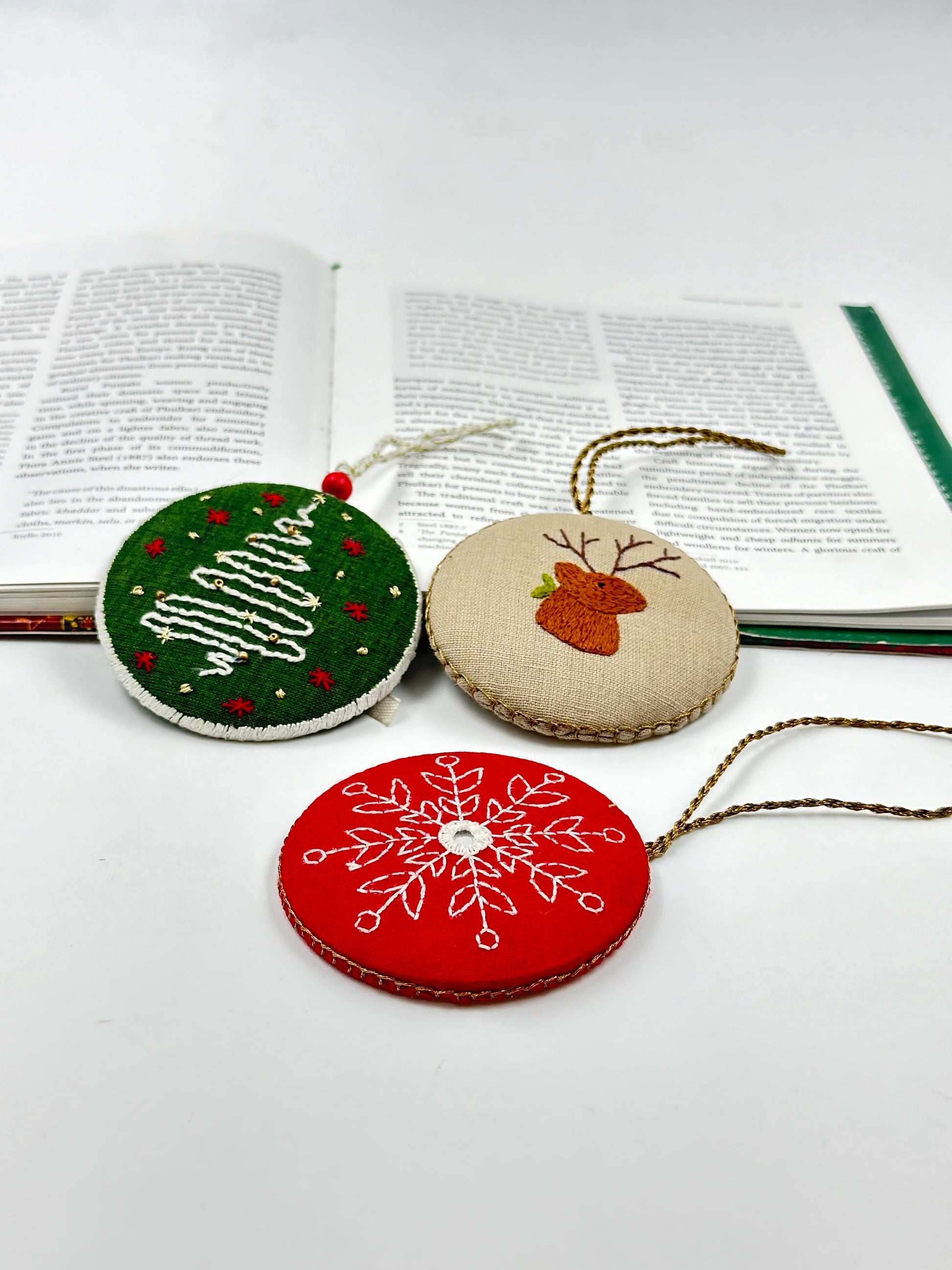 Festive Embroidery Trio - Christmas Ornaments Bundle