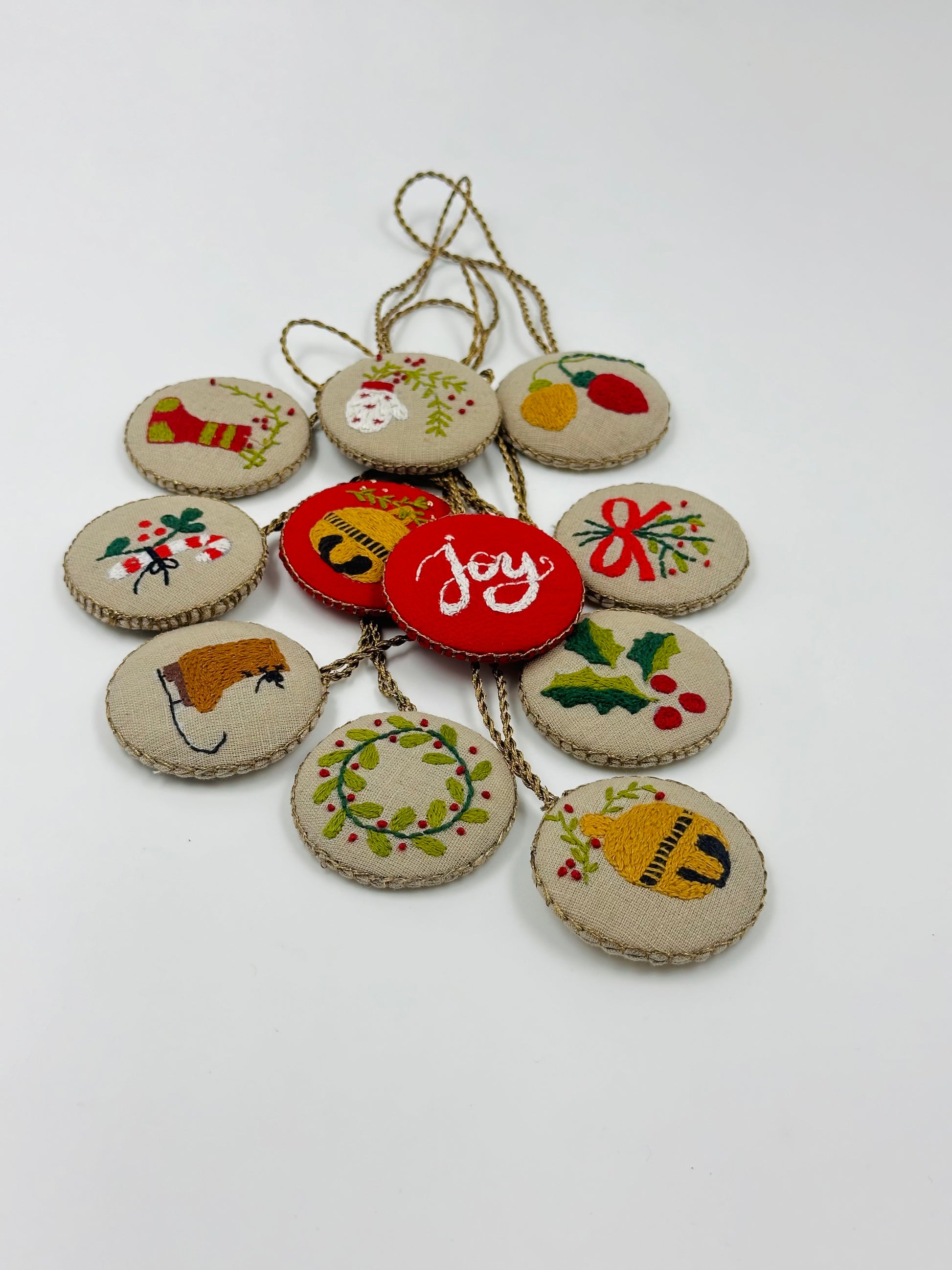 Golden Stitches - Hand-Embroidered Christmas Ornaments