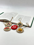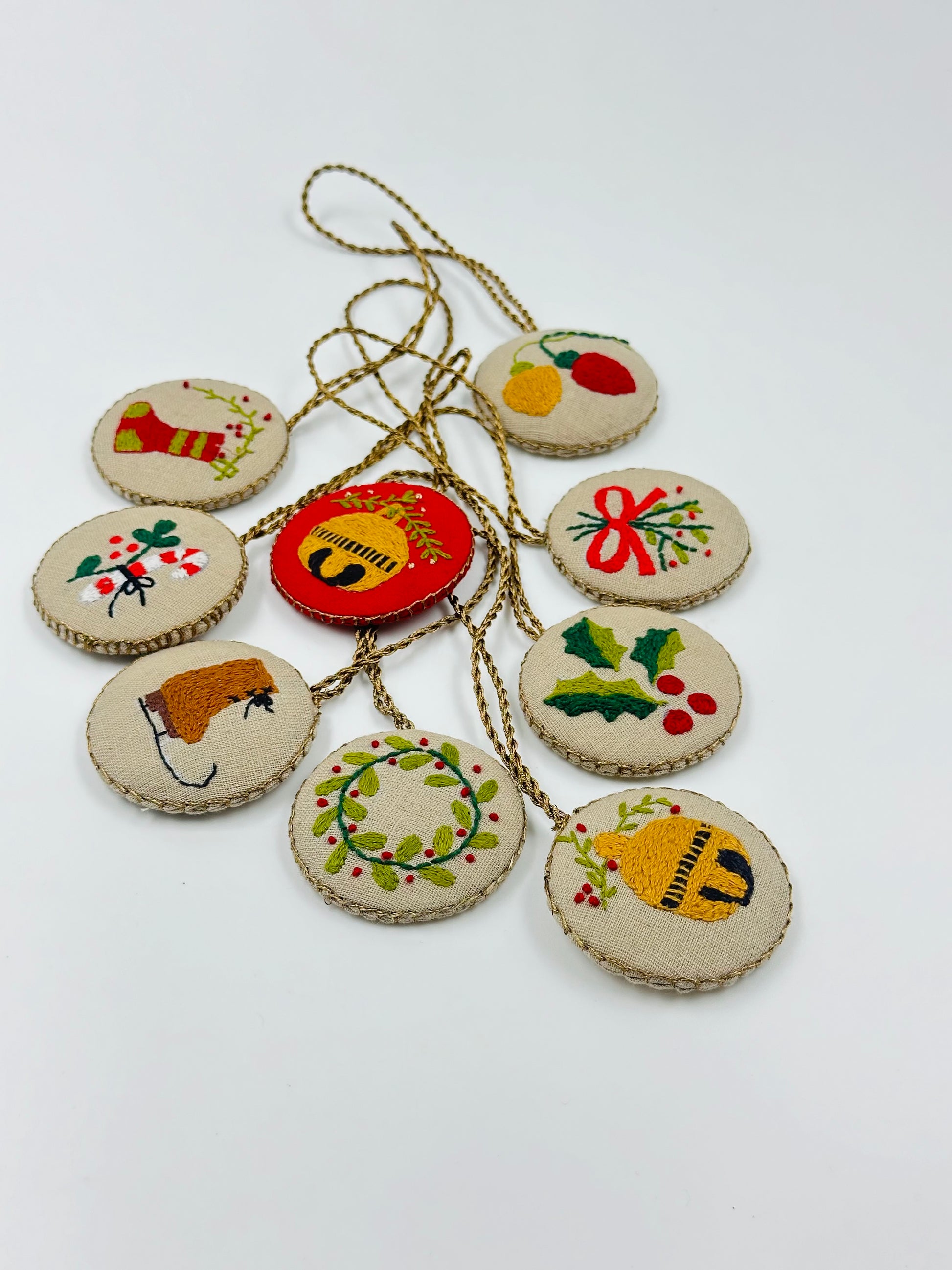Celebrate the festive season with our exquisite Golden Stitches Hand-Embroidered Christmas Ornaments, where tradition meets craftsmanship. Each 2-inch ornament is uniquely embroidered with delicate motifs like reindeer, snow boots, snowflakes, mittens, Christmas lights, flower wreaths, golden bells, stockings, Christmas trees, candy canes, and Christmassy boughs.