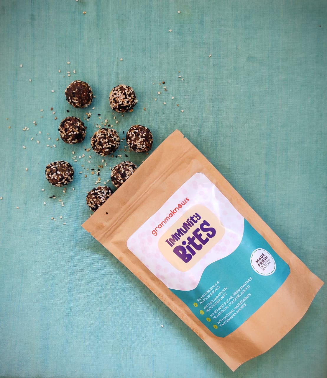 Gramma Knows your inside should be as great as your outside. To that end, she presents the I'm-uno (Immuno Bites). They taste just as good as they look. The boost packed in the potent blend of 14 spices, herbs, nuts, dates and raisins will ensure your inside stays just as good-looking as your outside.