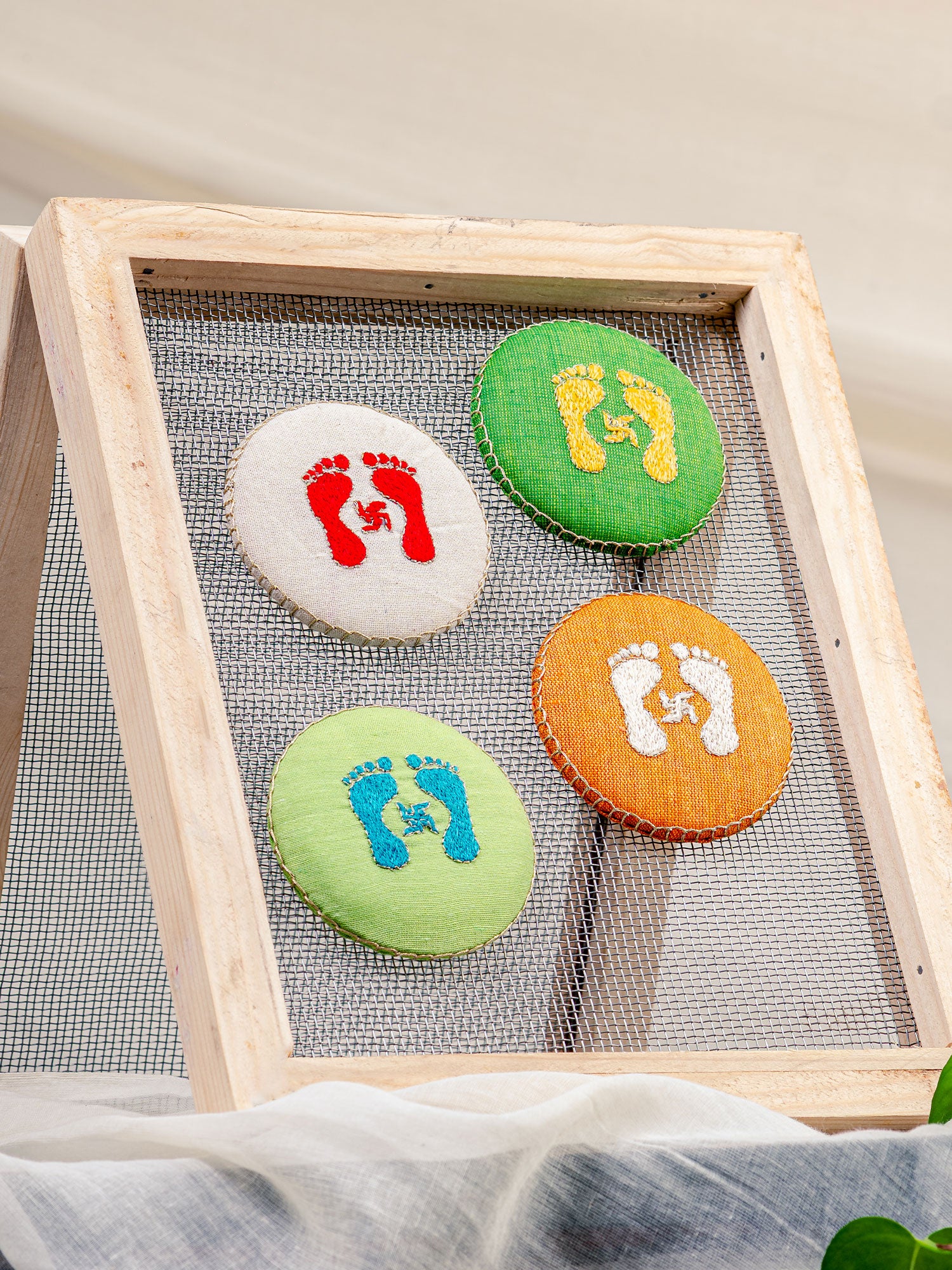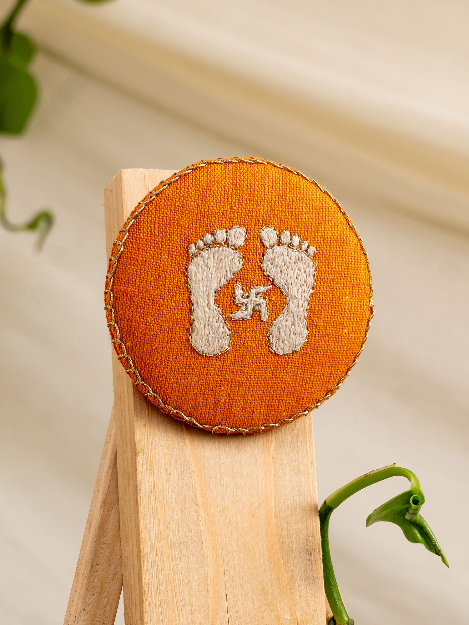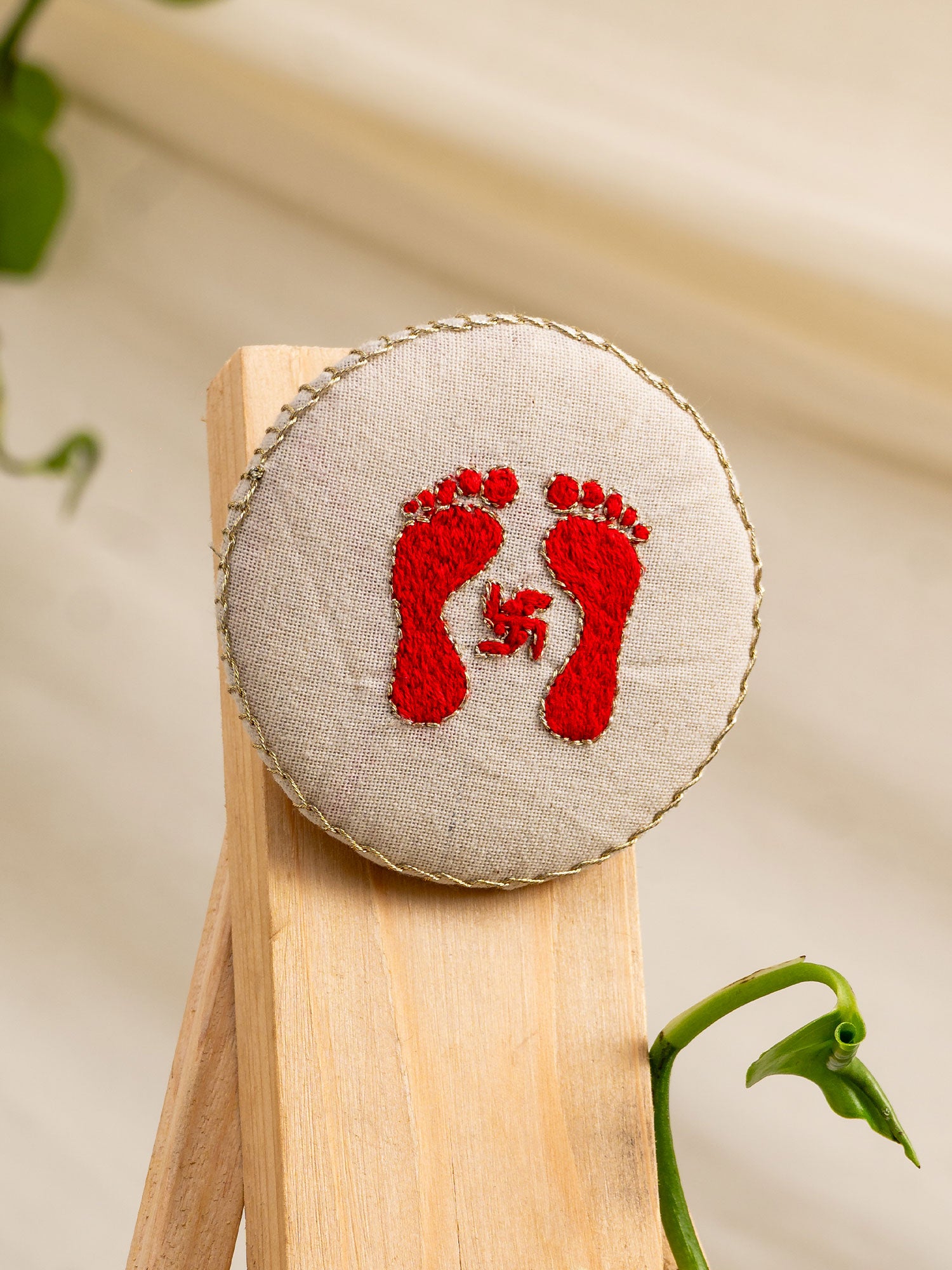 Tiny feet, big vibes! Our Lakshmiji’s Steps Magnet is a 3-inch hand-embroidered charm that brings the goddess of wealth and good fortune right to your fridge or desk — one delicate step at a time.