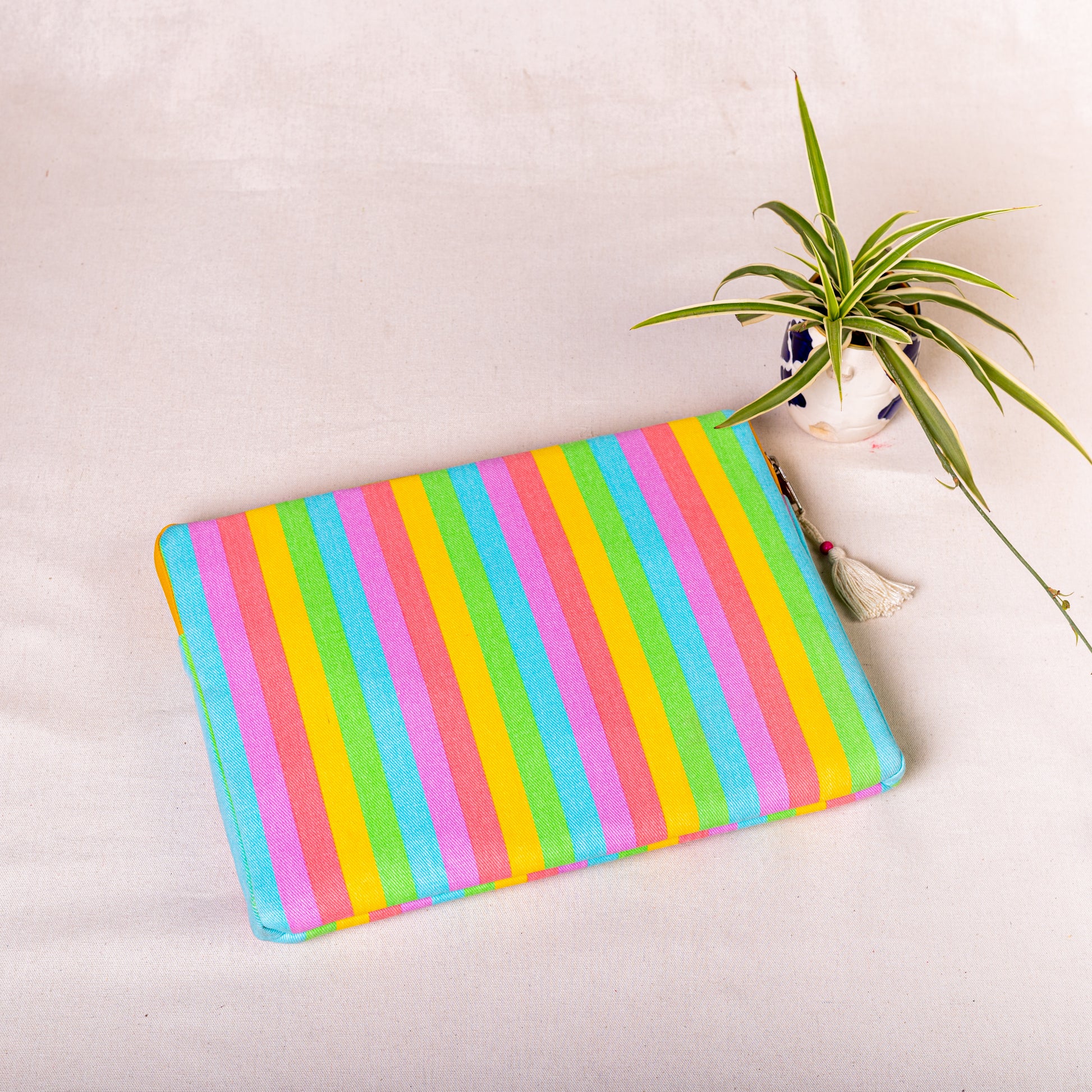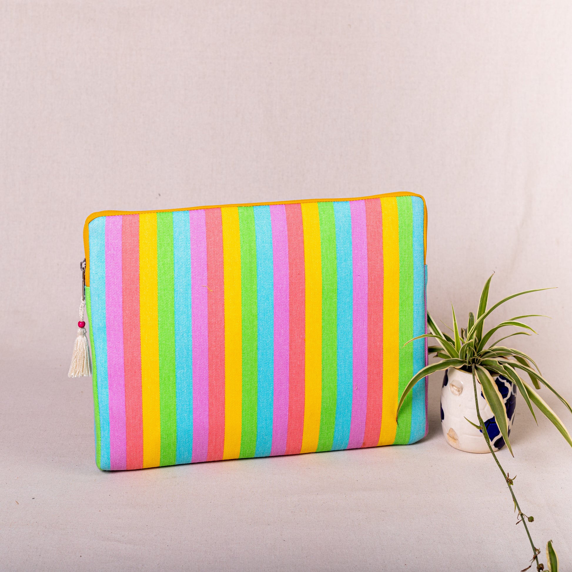 Our laptop sleeve has a beautiful rainbow print that will lighten up your day with a splash of colour.