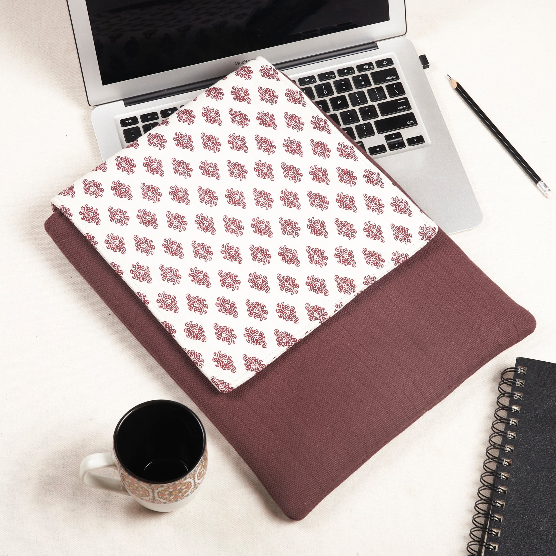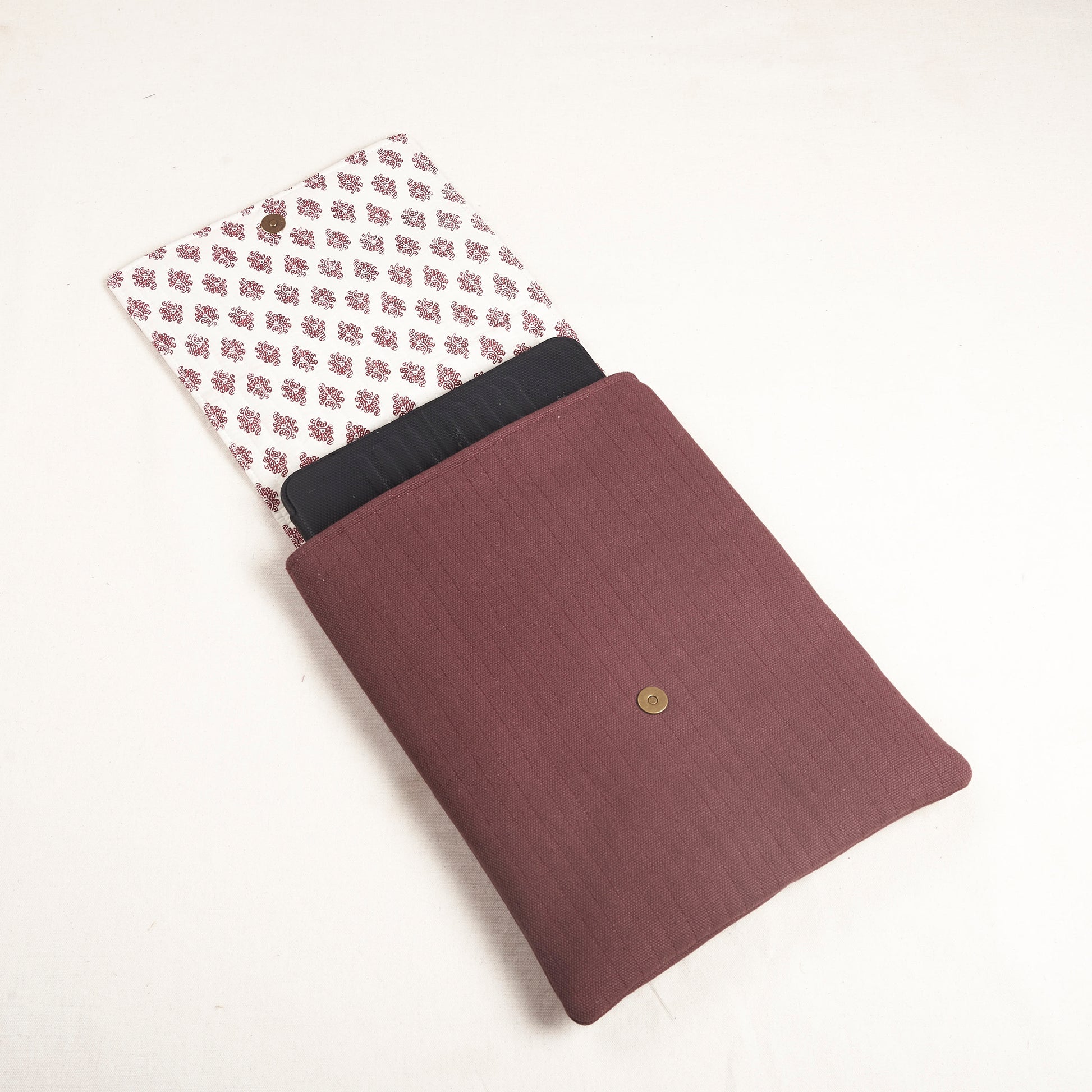This chocolate brown bad boy is the perfect companion for your everyday coffee-runs. Made with leftover fabric and hand-quilted with love, this laptop sleeve features a a fold-over flap design that lets you safely store your laptop and any additional cables.