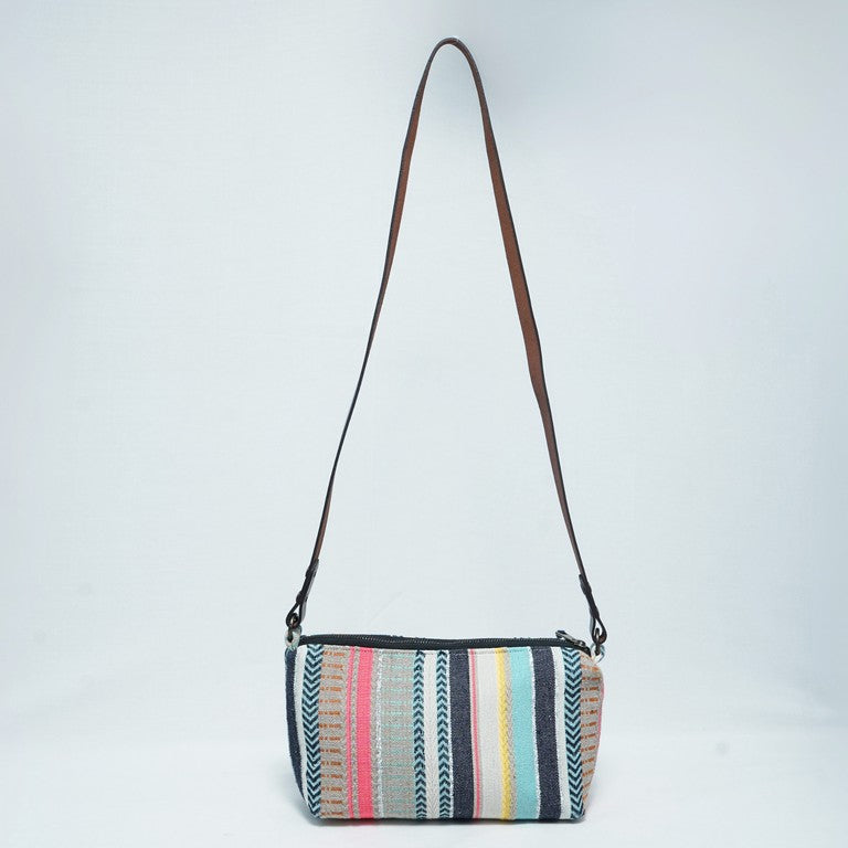 Bright, bold, and joyfully woven – this sling bag brings the party to your shoulder! With stripes in sunset pinks, ocean blues, and sunny yellows, this jacquard beauty is made for those who carry colour like a badge of honour. Sleek in size but big on personality, it’s ready for everyday adventures and weekend wanderings.