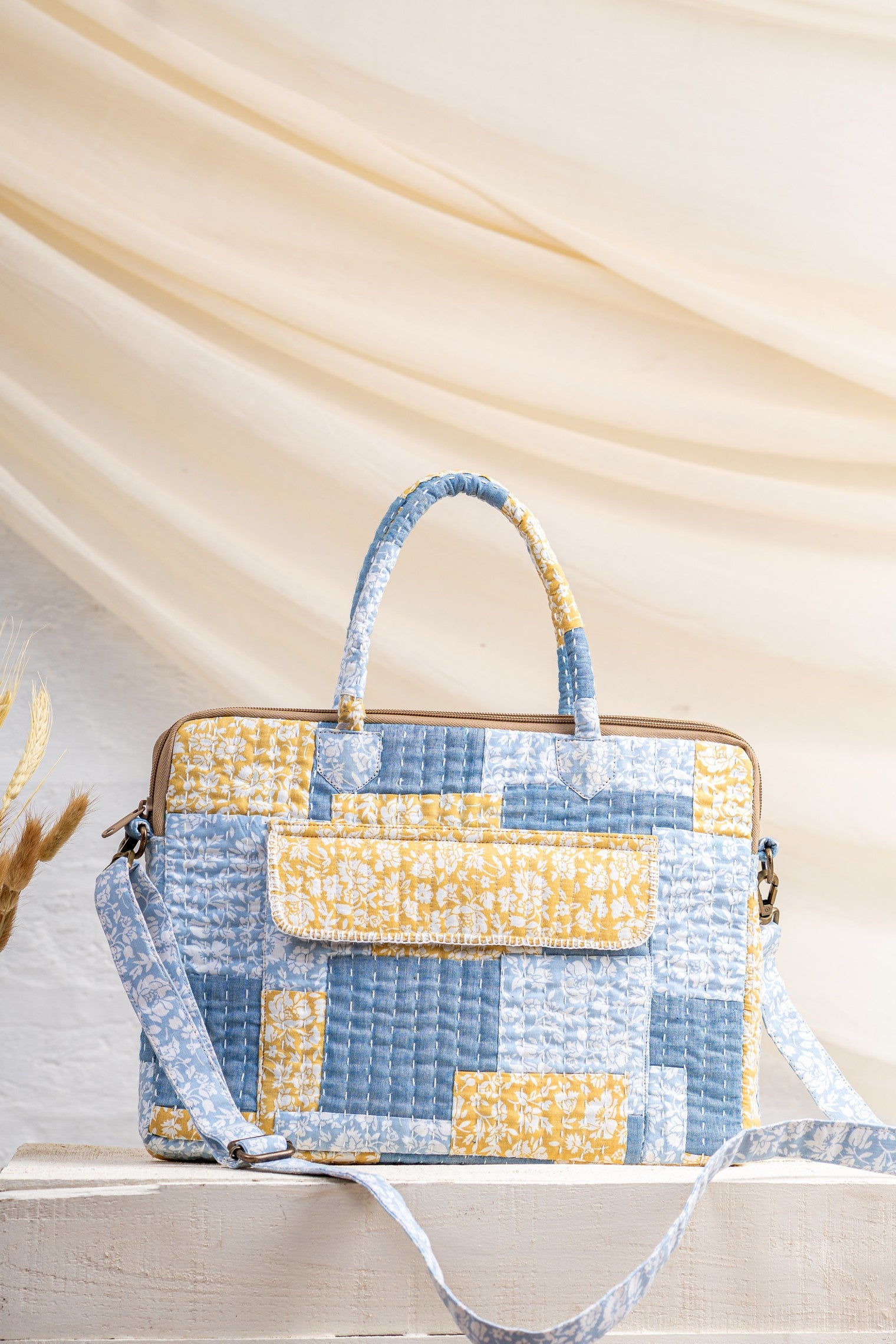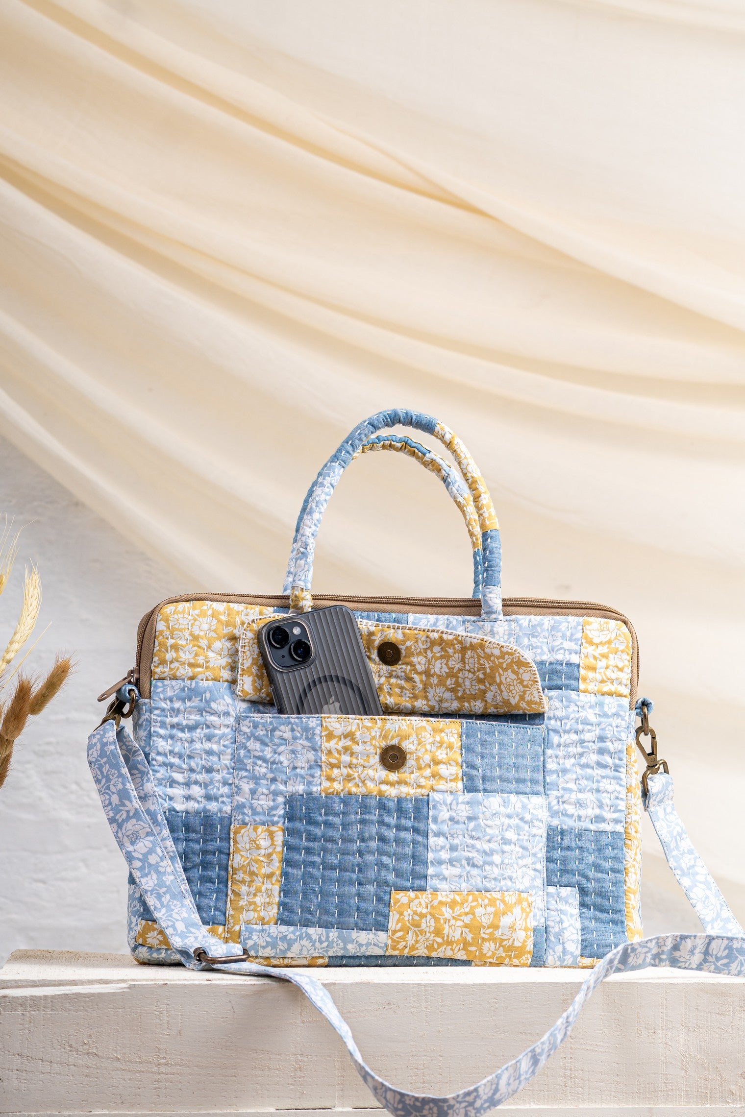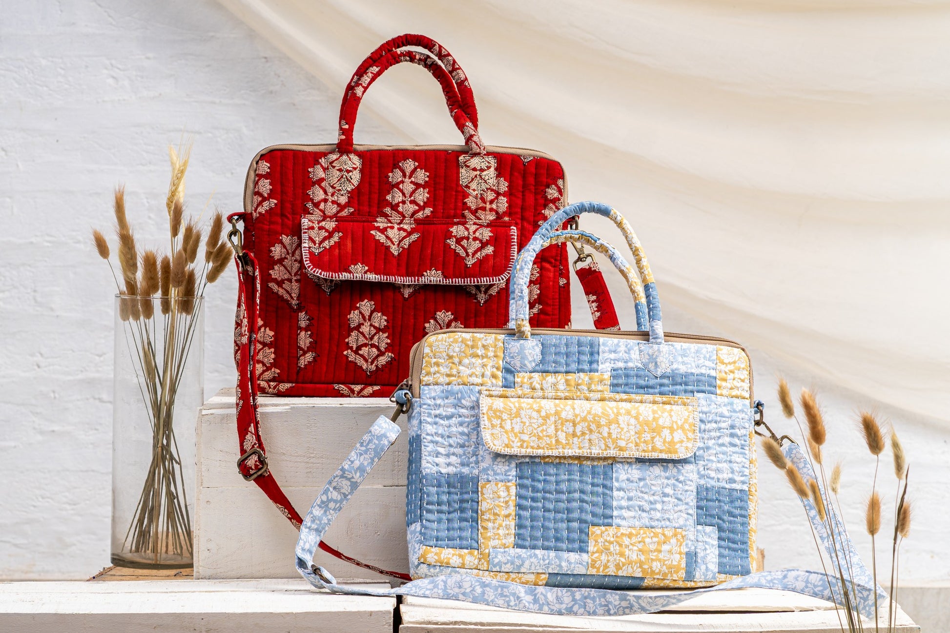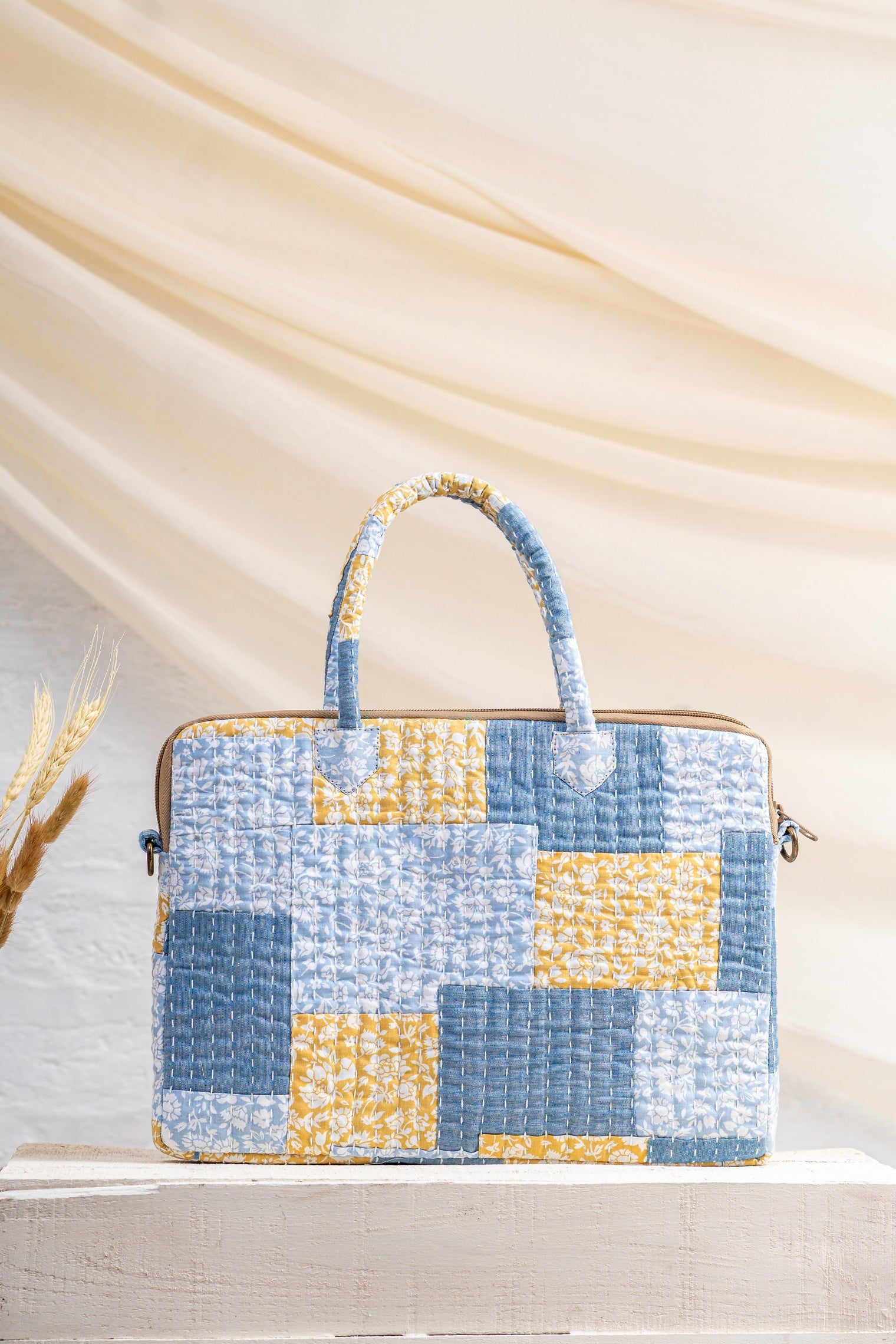 The Munna–Manju Attache Patchwork brings together pieces of fabric through delicate kantha stitches — playful, textured, and quietly artistic.