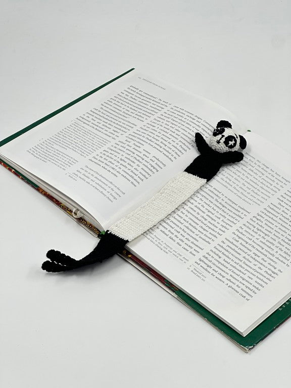 Bring some adorable charm to your reading with our handcrafted Panda crochet bookmark! Carefully crocheted by skilled artisans, this little panda friend will peek out of your book, keeping your place while adding a touch of fun and coziness to your reading time.