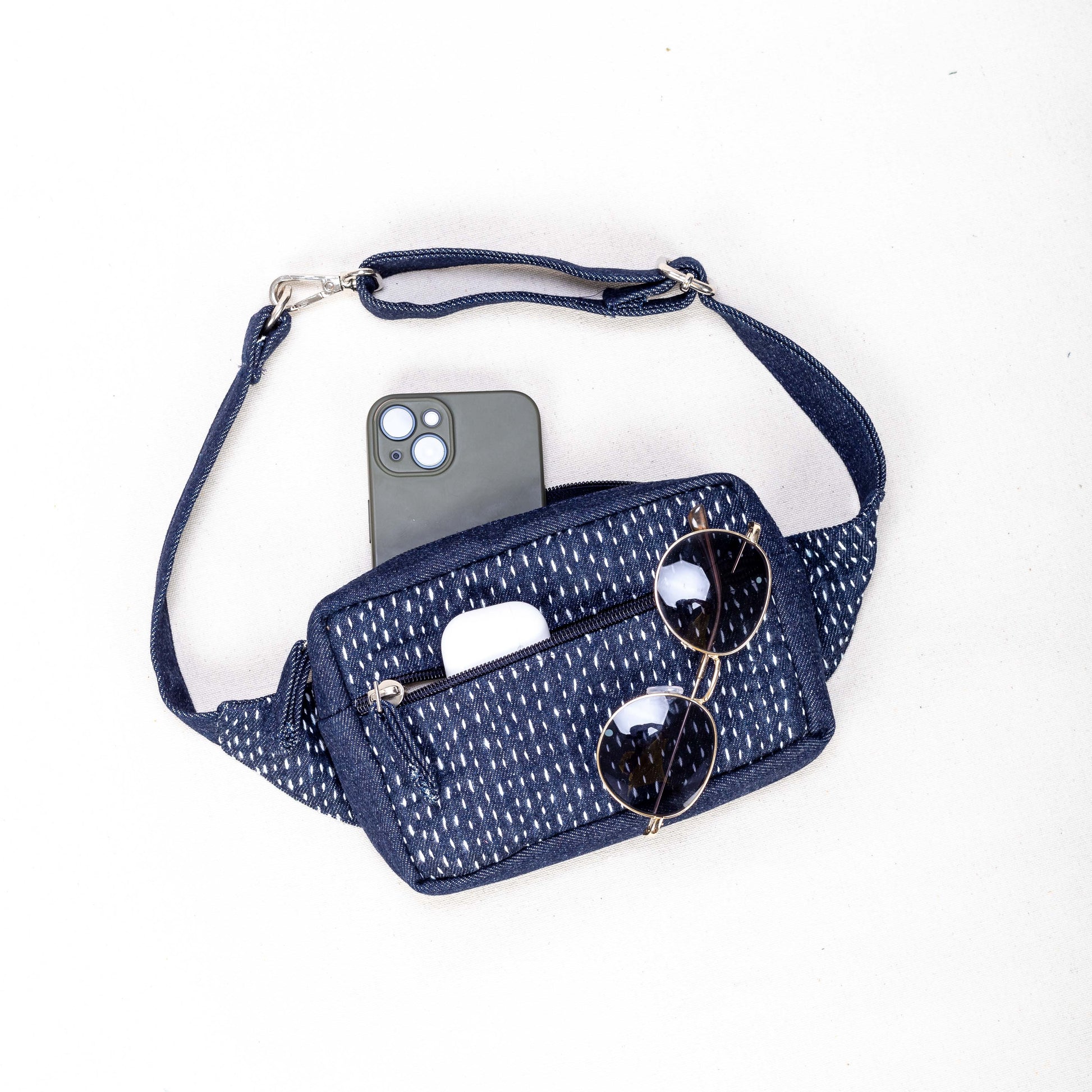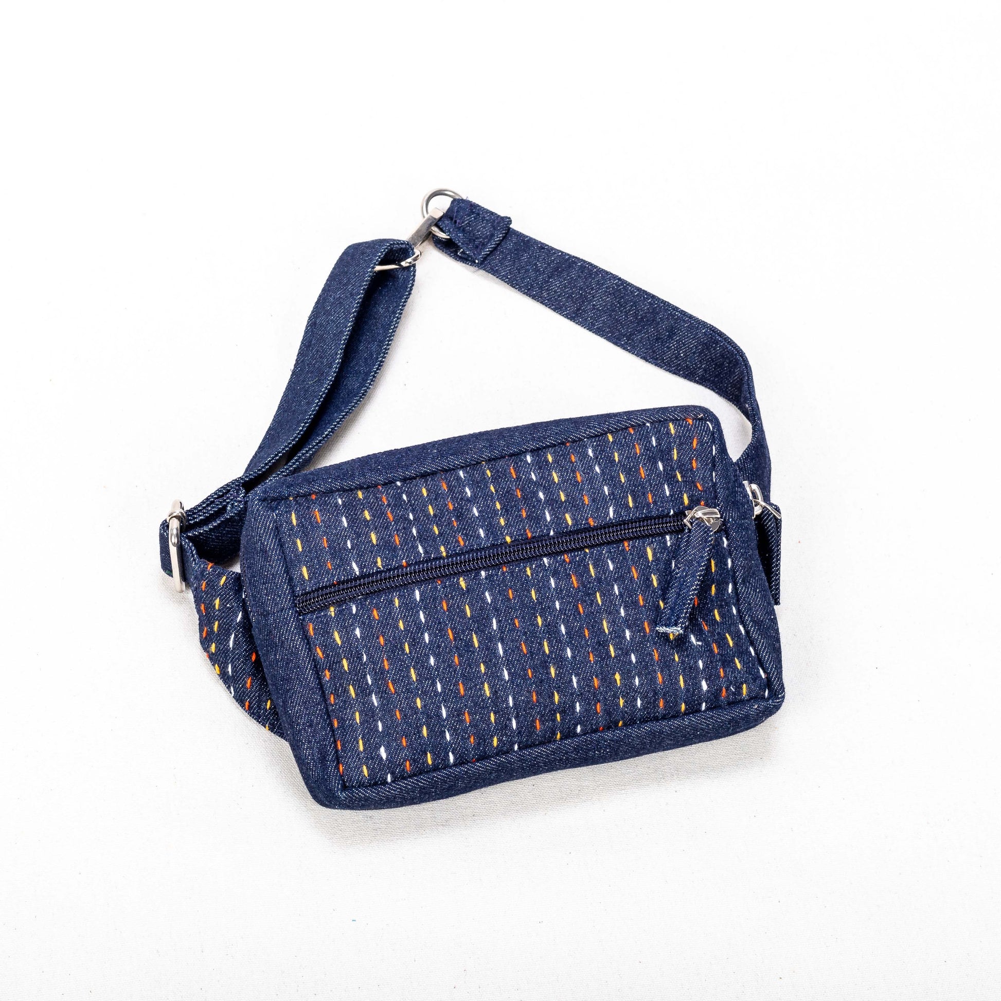 Embrace the essence of elegance and empowerment with the Poonam Fanny Sling Bag, a perfect blend of tradition and modernity. This exquisite bag, crafted by skilled women artisans, showcases intricate kantha work on a solid color fabric, making it a versatile accessory for any outfit.
