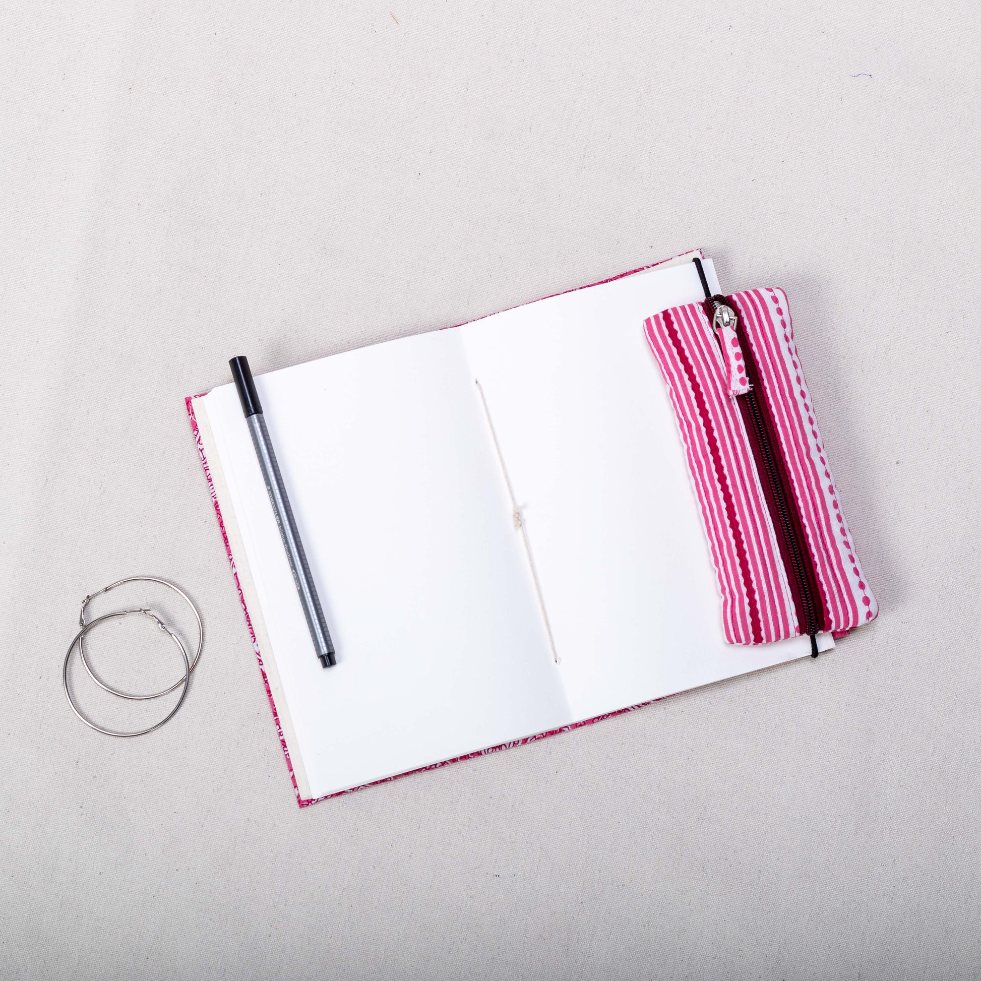 Get ready to add some color and convenience to your creative adventures with our Handcrafted Journal! Lovingly made by talented women artisans, this quirky and cool journal comes with a cute utility pouch to keep all your writing essentials in one place.