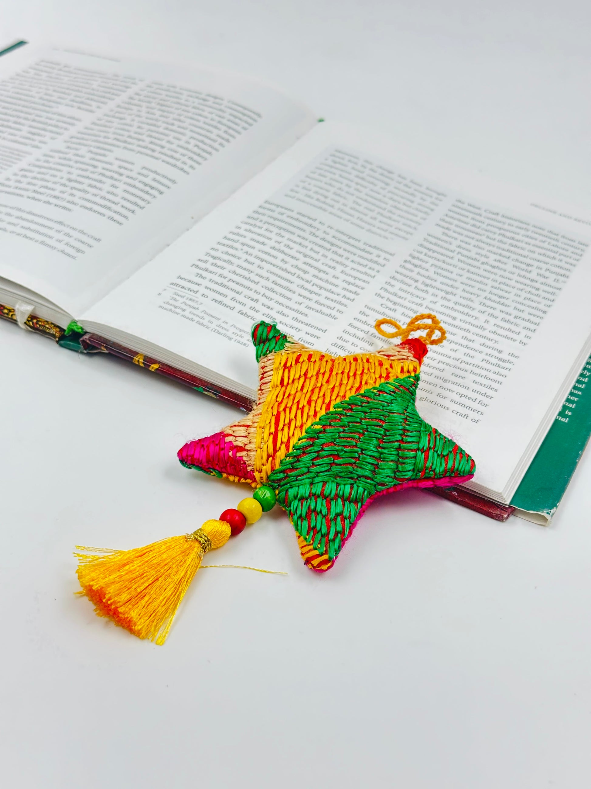 Add a touch of vibrant Punjabi tradition to your holiday decor with our Punjabi Starry Delight fabric ornaments. Intricately handcrafted with traditional Phulkari embroidery, these star-shaped ornaments shine with bright and festive colors, perfect for bringing warmth and heritage to your Christmas tree.
