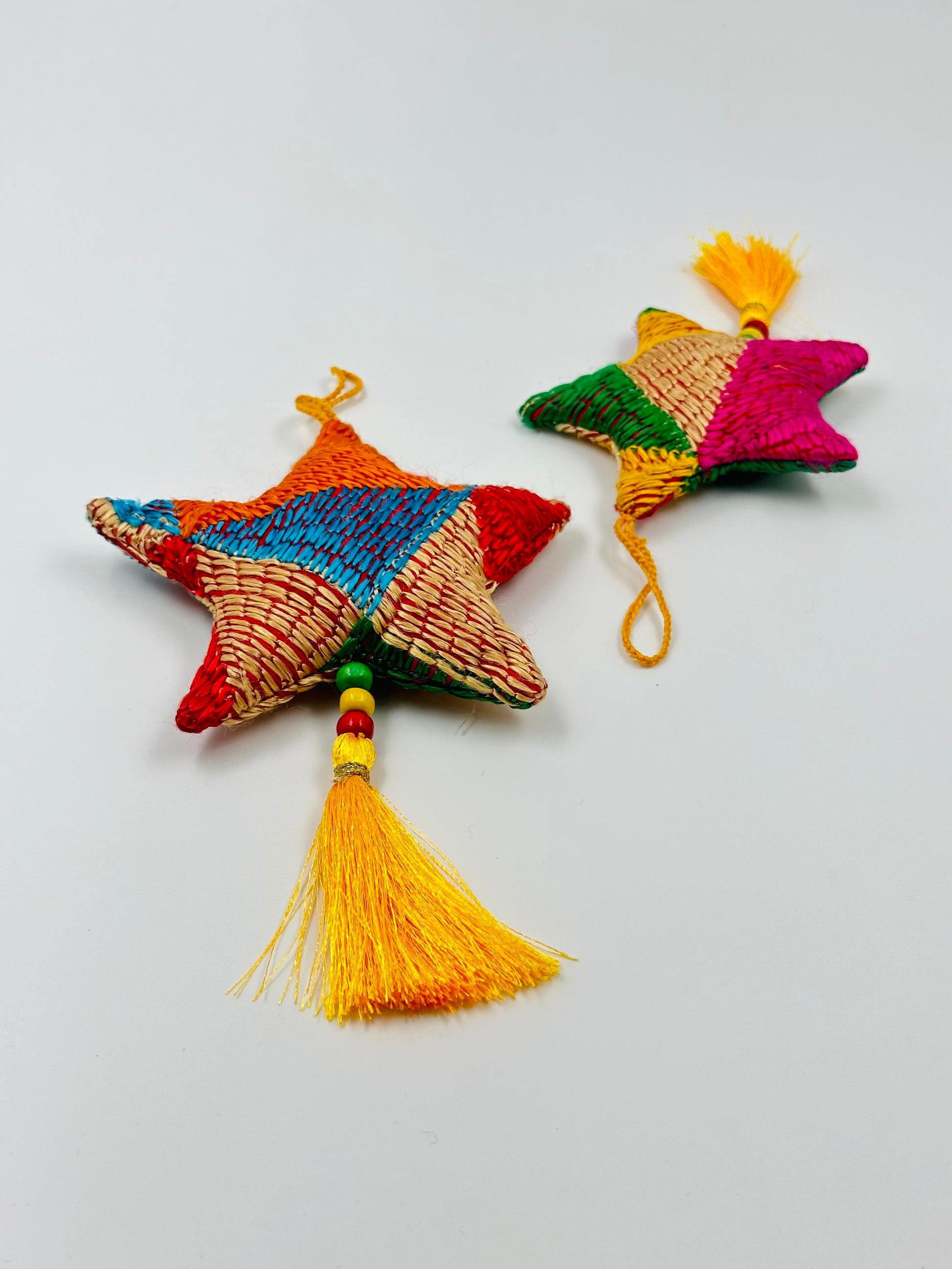 Available in two sizes—4 inches and 5 inches wide—or as a charming set of two, these ornaments celebrate the rich culture of Punjab while adding a unique, handcrafted touch to your holiday celebrations. Whether you're decorating your tree, gifting a loved one, or sprucing up your home, these stars promise to light up your festive season with joy and tradition.