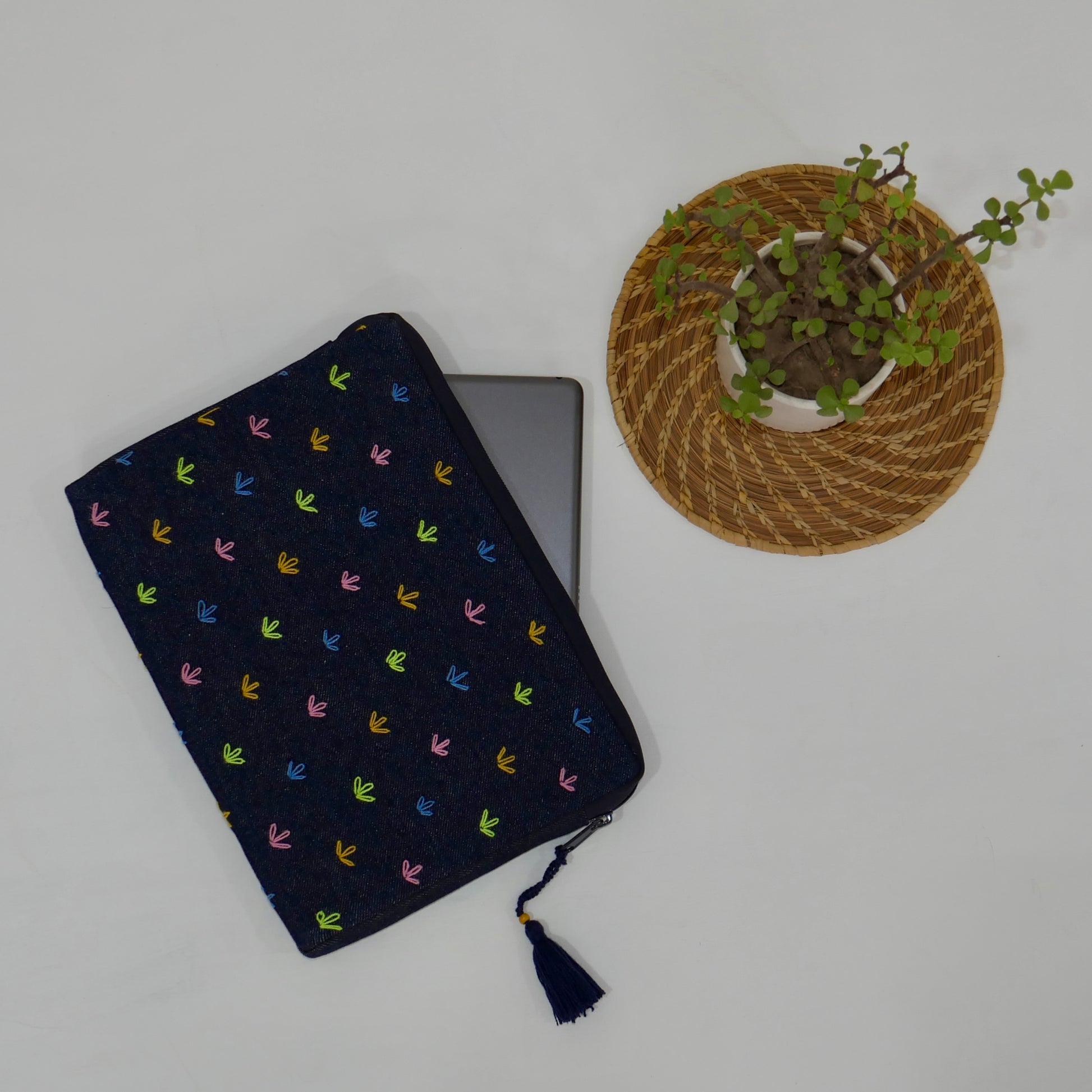 Bright, playful, and full of personality—this horizontal iPad sleeve is made in quilted denim and embroidered all over in colourful thread motifs. Designed to keep your iPad safe without taking itself too seriously, it’s the kind of sleeve that makes you smile every time you pull it out.