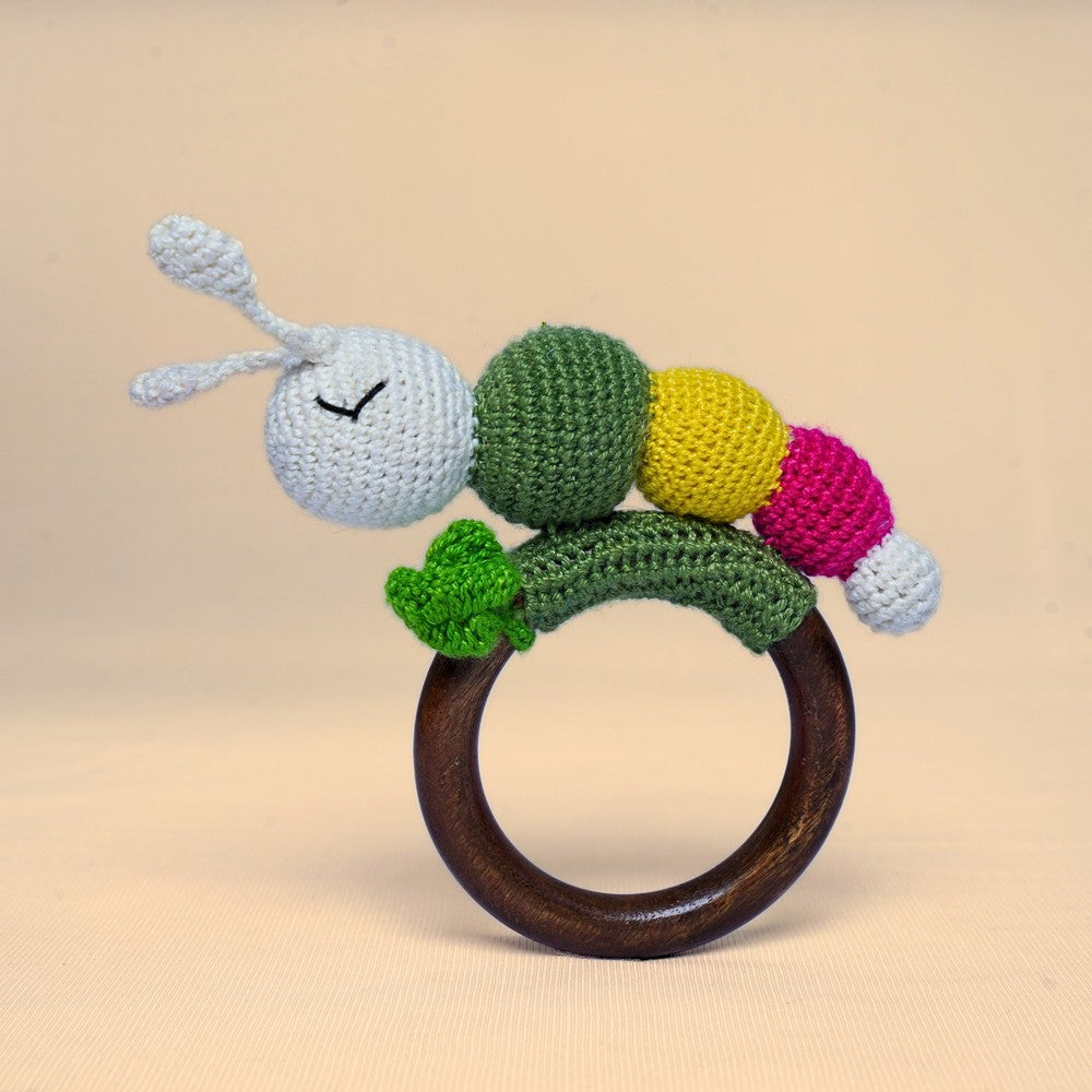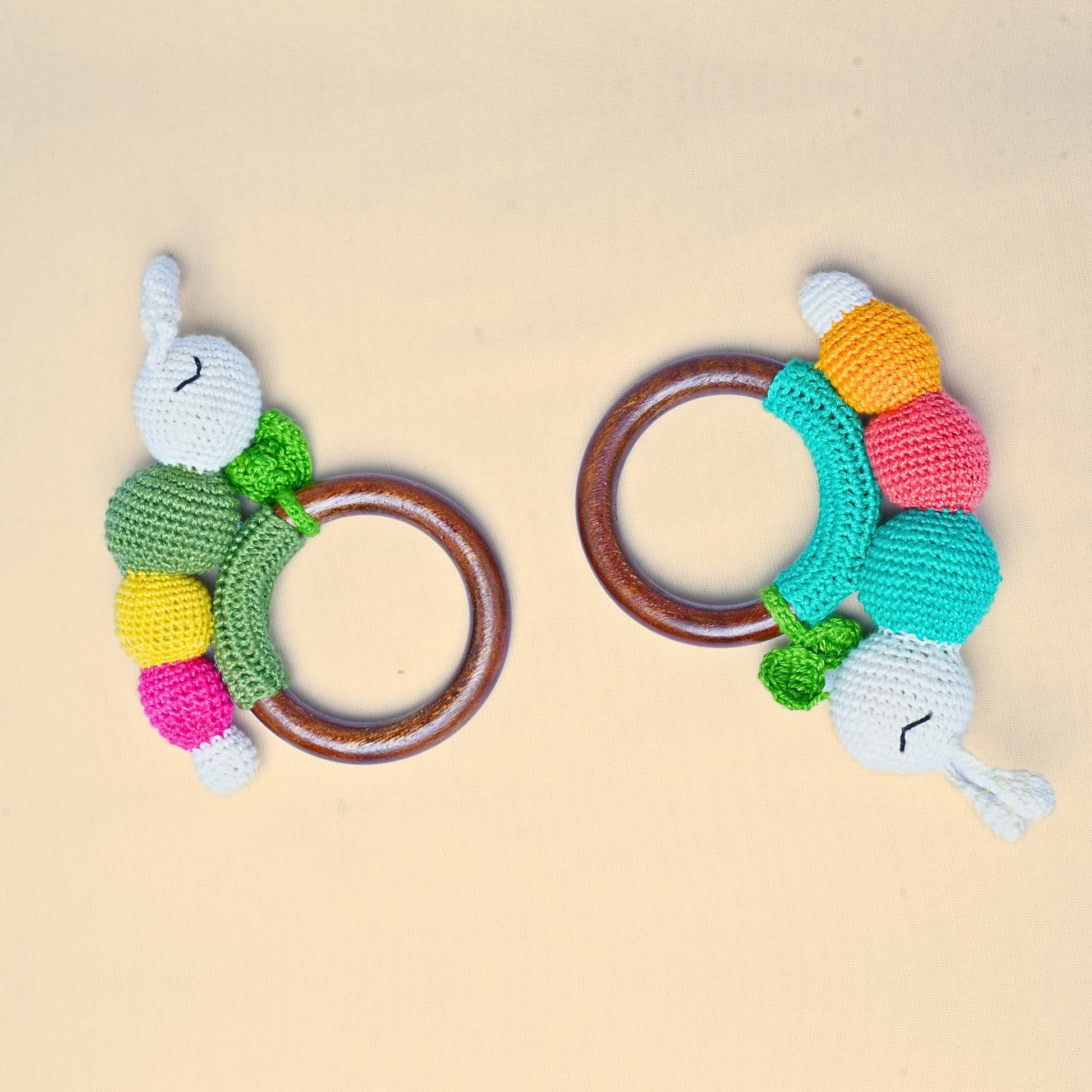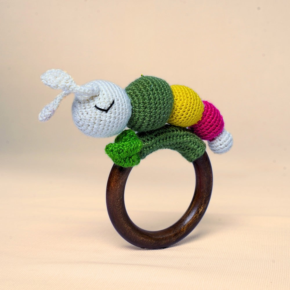 Wiggle, rattle, repeat! Say hello to SnuggleCrawl — our sleepy little caterpillar who’s here to charm babies and soothe cranky moments, one gentle shake at a time. Hand-crocheted with love and a soft wooden ring for easy gripping, each caterpillar features cheerful colors and a quiet jingle that makes tiny ears perk up in delight. A playful sensory toy and a forever keepsake, made with safety and smiles in mind.