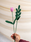 Soft Beginnings is our hand-crocheted pink tulip, shaped like it’s still opening up to the day. Simple, elegant, and tender in form, it brings a sense of calm wherever it rests—on a desk, beside a bed, or tucked into a thoughtful gift. Add the crochet leaf, and it feels like a little pause from nature, made to last.